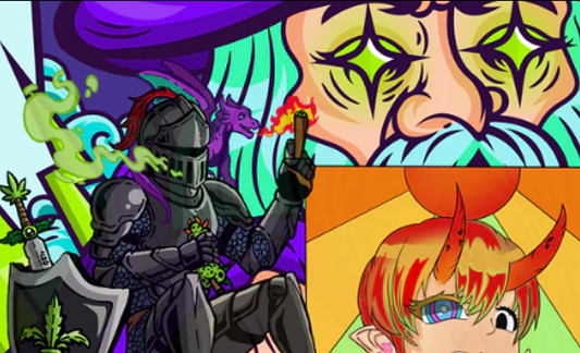 A chicken and a skunk solve an ancient conflict between a royal dwarf and a goblin using a weed bud and a few folling papers.